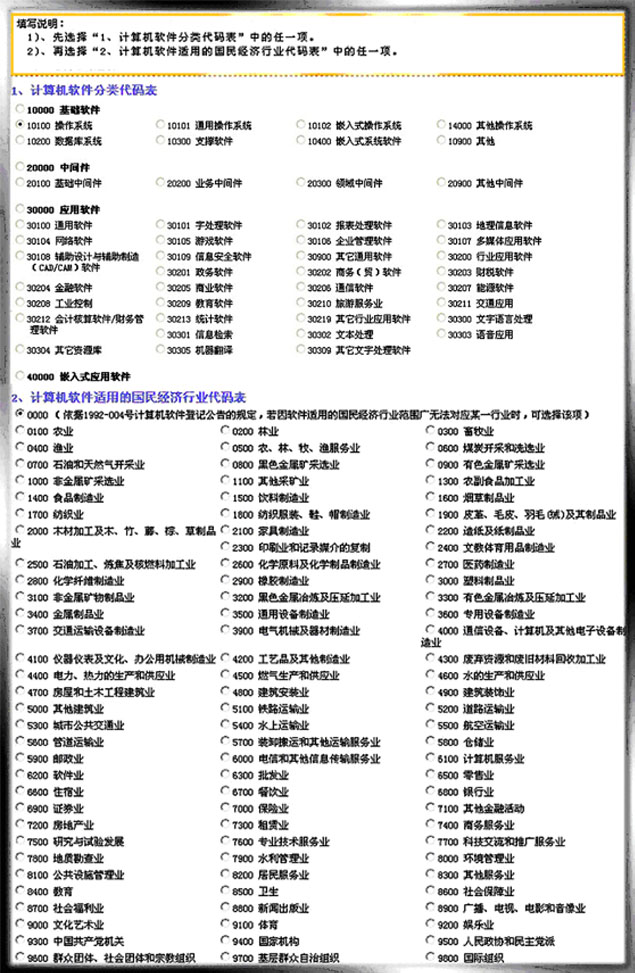 登記軟件分類代碼與計算機軟件適用的國民經濟行業代碼之間用連體符“—”連接,表示形式如下: