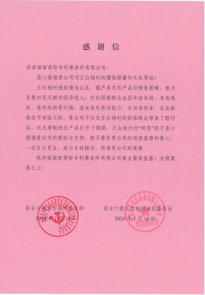 為解決村民農產品滯銷困難、提升村民經濟生活水平,切實鞏固脫貧攻堅成果,高標準高質量推動主題教育走深走實。1月14日上午,中共濟南誠智商標專利事務所有限公司支部書記、誠智強企集團董事長王汝銀帶隊到萊蕪區茶業口鎮王白楊村,為村里的低保戶、五保戶和殘疾人家庭發放愛心物資,助力解決農產品滯銷難題,同時送上新春問候和祝福。