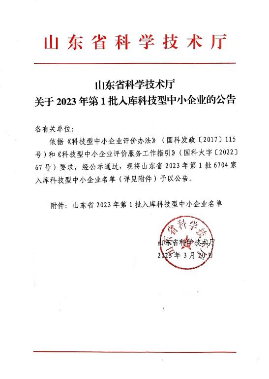 山東省2023年第1批入庫科技型中小企業名單公告企業清單.pdf