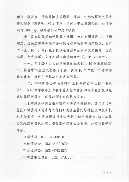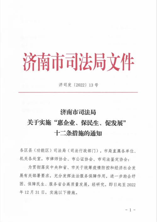 濟南市司法局關于實施“惠企業、保民生、促發展”十二條措施的通知